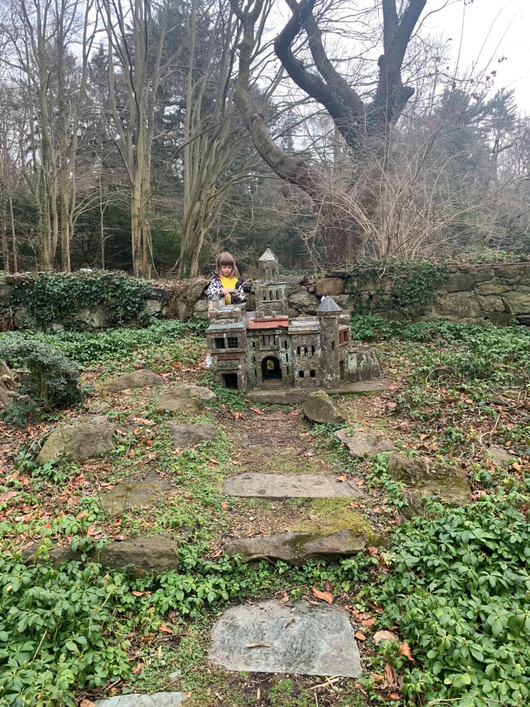 To kill some time outside of the car, we went to the Arboretum across the street from the graveyard. My kids quickly seized control of an area of the park labeled “the children’s habitat” by securing a tactical position in a tower made of wet plywood and tree limbs. I tried to search the the sliver of 5G service my phone was struggling to remain connected to for more information about the layout of Locust Valley Cemetery. Eventually, given the growing hunger within my travel party, we elected to leave.